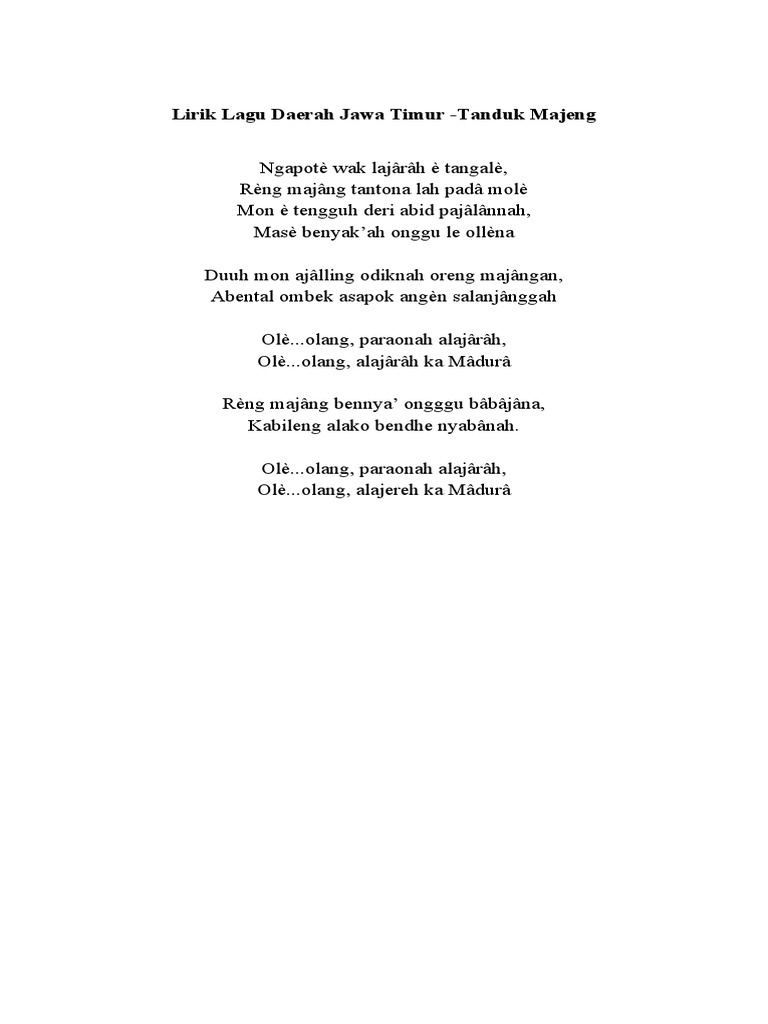 Lirik Lagu Tanduk Majeng Madura from 4.bp.blogspot.com Maybe you would like to learn more about one of these? We did not find results for: Check spelling or type a new query.