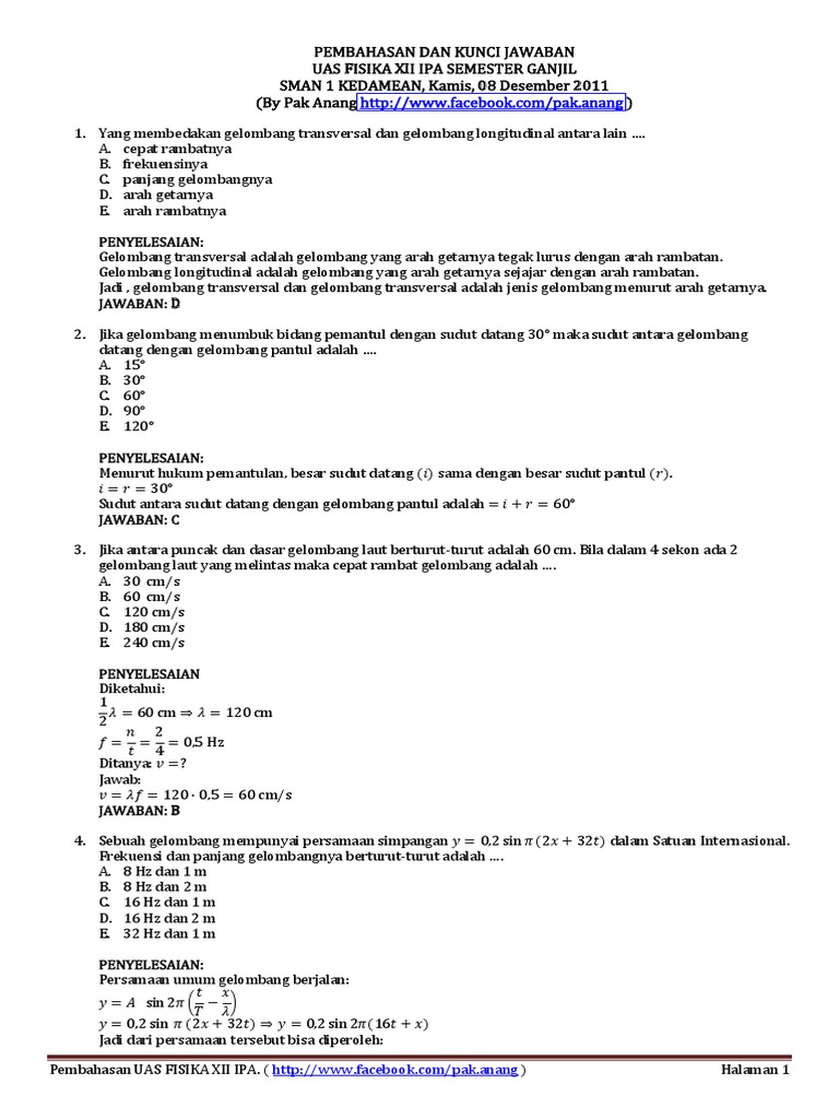 Soal Uas Fisika Kelas 12 Semester 1 Dan Pembahasannya / Soal Uas Fisika Sma Kelas 11 Semester 1 Jawabanku Id / Materi yang diujikan seluruhnya mencakup materi ujian nasional smk.